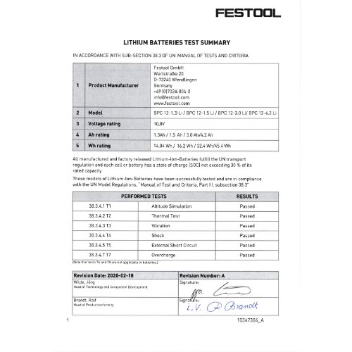 Hersteller: Festool GmbH, Wertstraße 20, D-73240 Wendlingen a. N.