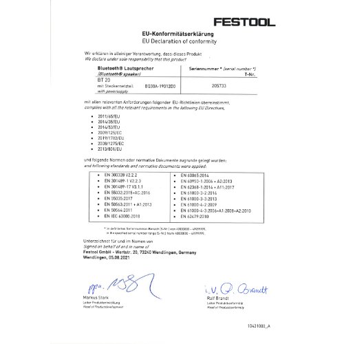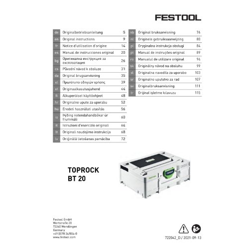 Hersteller: Festool GmbH, Wertstraße 20, D-73240 Wendlingen a. N.