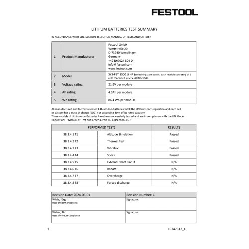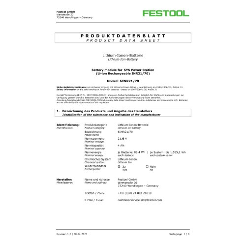 Hersteller: Festool GmbH, Wertstraße 20, D-73240 Wendlingen a. N.
