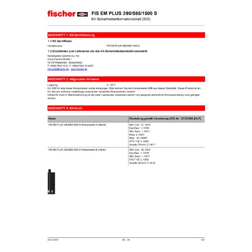 | Variante: | Fischer Epoxidharzmörtel FIS EM Plus 1500 S |