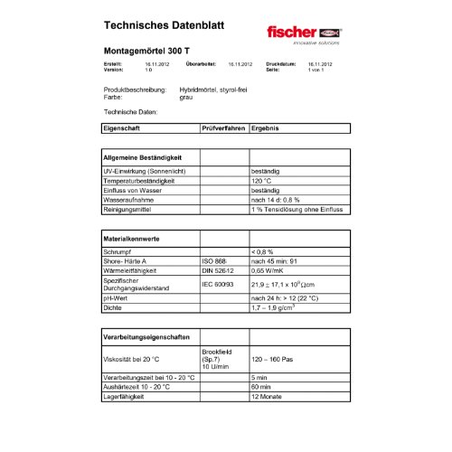 Produktinformationen "Fischer Montagemörtel FIS VL 300 T"