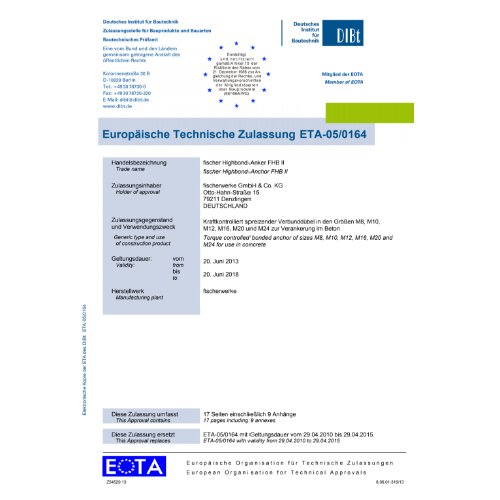 | Variante: | Fischer Patrone FHB II-P 20x170 |