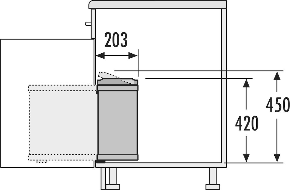 FORMAT Einbauabfallsammler Öko-Flex 3418901; Montage: Seitenwände,hinter Drehtüren,links oder rechts; Werkstoff Gehäuse: Edelstahl; Werkstoff Eimer und Deckel: Kunststoff; Ausführung: mit Deckel; Einsatzbereich: Küchen; Fassungsvermögen: 18 l; Setinhalt (Eimer): 1 St.; Werkstoff Deckel und Ringe: Kunststoff; Farbe Deckel und Ringe: weiß; Basis: Einbauabfallsammler; Korpustiefe: 250 mm; Anwendung: für Korpus mit Drehtüren; Inhalt Eimer: 1 x 18 l; Einbautiefe: 199 mm; Einbauhöhe: 399/450 mm; Einbaubreite: 376 mm; Korpusbreite: 450 mm