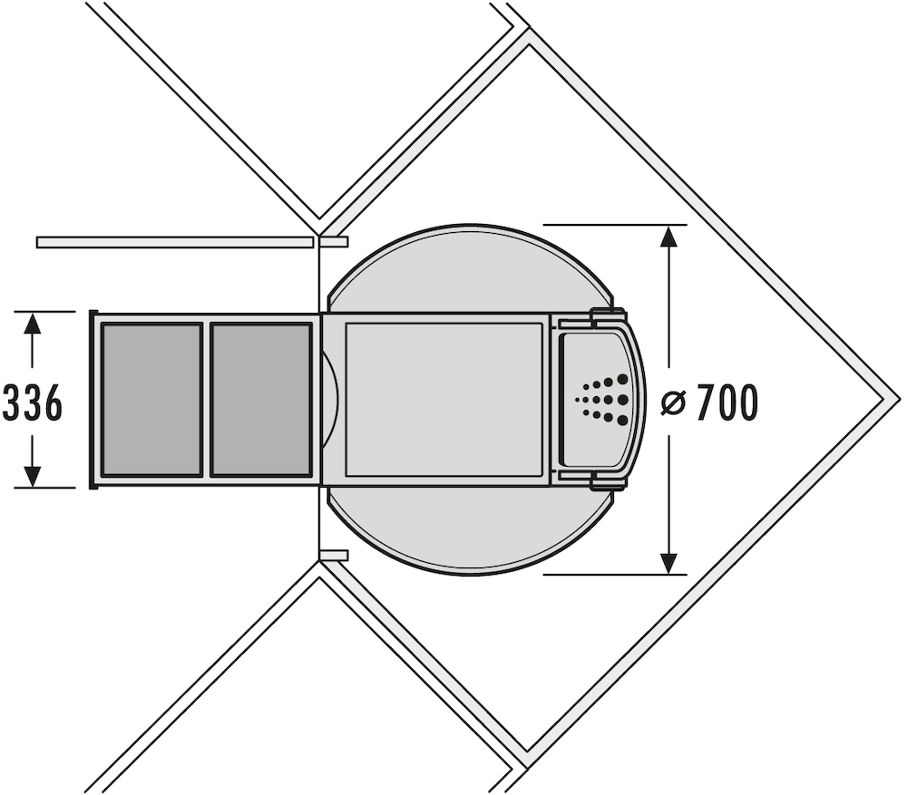 | Anwendung: | für Eckspülenschrank mit Drehtüren |