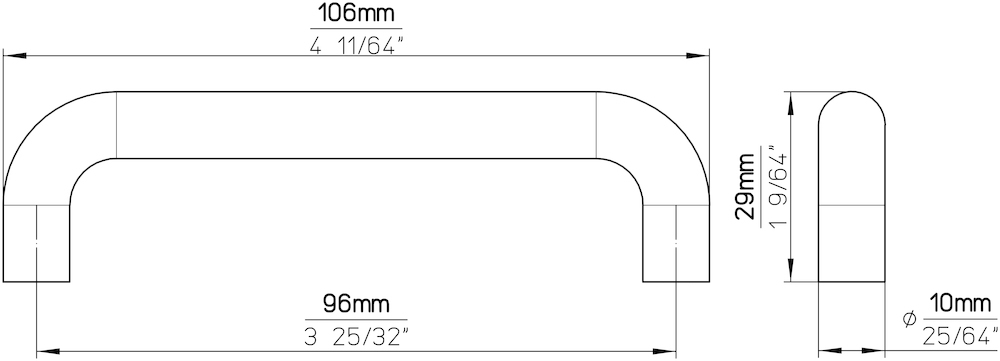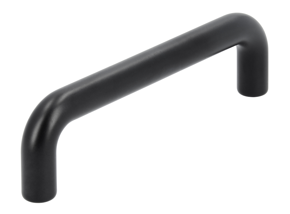 FORMAT Bügelgriff Liv; Material: Druckguss; Befestigung: M4 Gewinde; Einsatzbereich: Möbel; Farbe: schwarz; Länge: 106 mm; Höhe: 29 mm; Durchmesser: 10 mm; Oberfläche: matt; Montage: unsichtbar verschraubt; Bohrabstand: 96 mm; Basis: Bügelgriff; Form: U-Form; Befestigungsart: zur Verschraubung von der Rückseite; Anzahl Befestigungspunkte: 2 St.