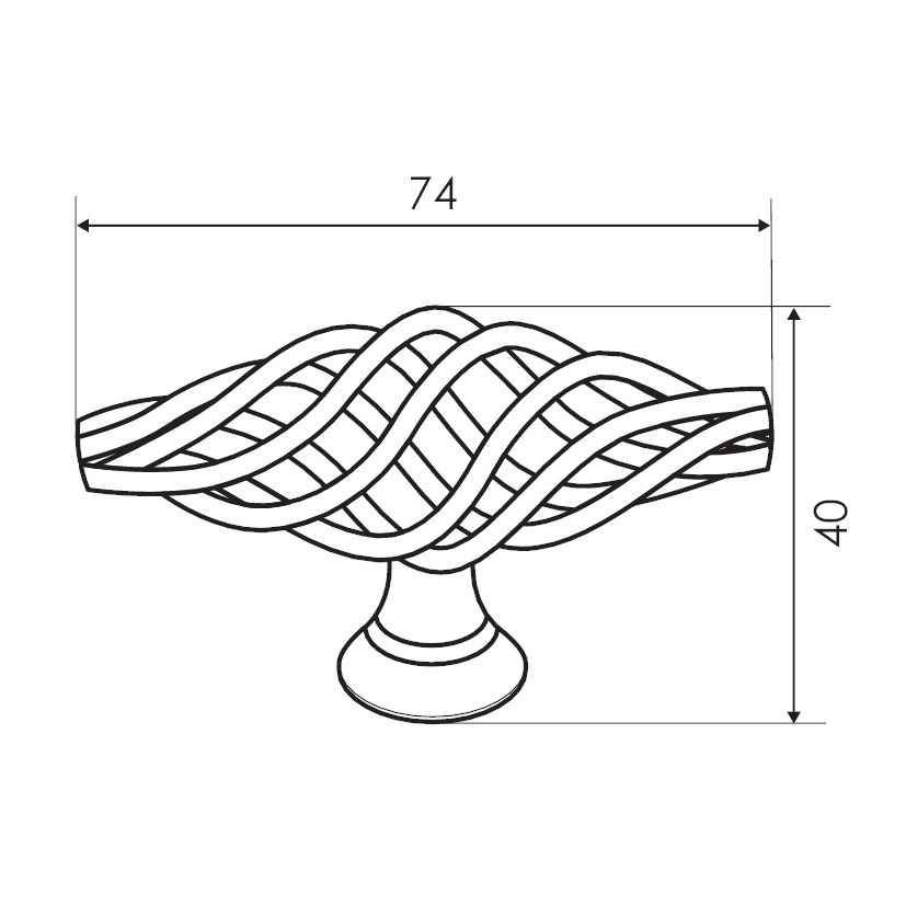 FORMAT Knopf Galatea; Befestigung: M4 Gewinde; Form: oval; Material: Eisen; Einsatzbereich: Möbel; Basis: Knopf; Befestigungsart: zur Verschraubung von der Rückseite; Länge: 74 mm; Höhe: 40 mm; Farbton: eisen antik