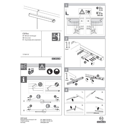 Eigenschaften "GEZE Mitnehmerklappe CB flex,kürzbar,edelstahl matt"