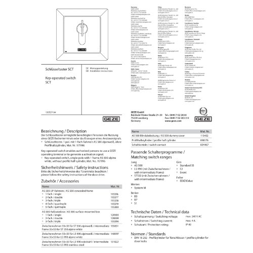 | Variante: | GEZE GEZE Schlüsseltaster SCT,UP,alpinweiß,"Herstellerlogo",2-polig |