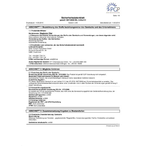 Hersteller: Peter Greven Physioderm GmbH, Procter & Gamble Str.26, 53881 Euskirchen, DE, +492251776170, hautschutz@pgphysio.de