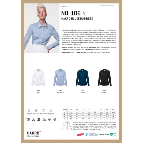 Eigenschaften "HAKRO Bluse Business himmelblau XS"
