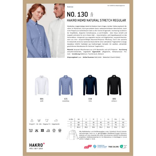 Eigenschaften "HAKRO Hemd Natural Stretch Regular ozeanblau XL"