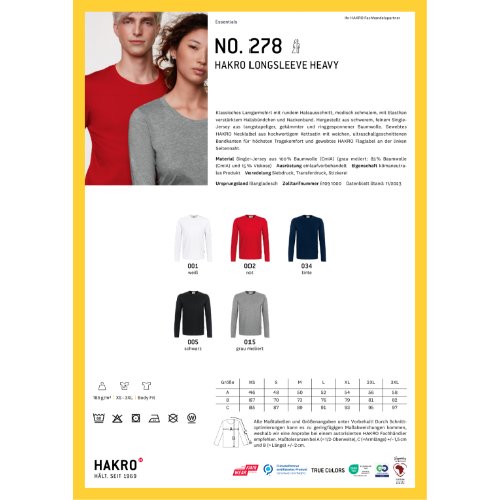 Eigenschaften "HAKRO Longsleeve Heavy rot M"