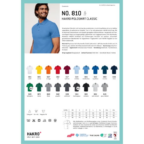 Klassisches Poloshirt mit hochwertig verarbeiteter 3-Loch-Knopfleiste mit extra haltbar angenähten, bruchsicheren Knöpfen, Ton in Ton mit gelasertem HAKRO Schriftzug. Mit Ersatzknopf, Nackenband und doppelt geriegelten Seitenschlitzen. Hergestellt aus feinmaschigem Piqué aus langstapeliger, gekämmter und ringgesponnener CmiA-Baumwolle. Gewebtes HAKRO Necklabel aus hochwertigem Kettsatin mit weichen, ultraschallgeschnittenen Bandkanten für angenehmen Tragekomfort und HAKRO Flaglabel an der linken Seitennaht.