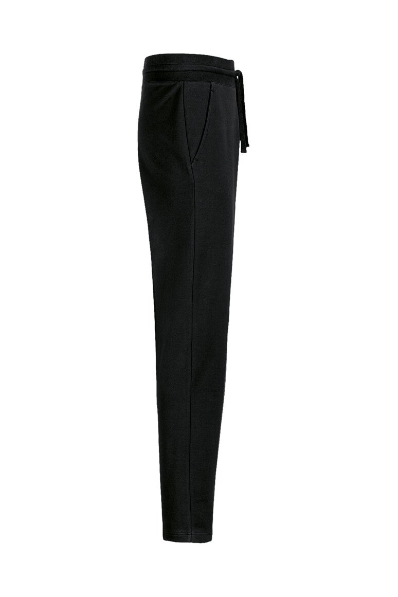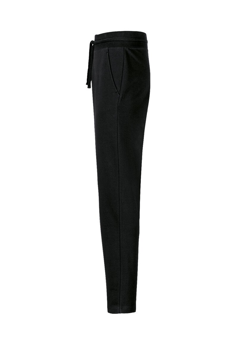 Sportlich leger geschnittene Sweathose mit weitenverstellbarem Bund mit Kordelzug, Einschubtaschen, offenem Beinabschluss ohne Bündchen und nicht angerauter Innenseite (French-Terry). Hergestellt aus pflegeleichter Baumwoll-Polyester-Mischung für höchste Ansprüche. Gewebtes HAKRO Label aus hochwertigem Kettsatin mit weichen, ultraschallgeschnittenen Bandkanten für höchsten Tragekomfort am inneren Bund.