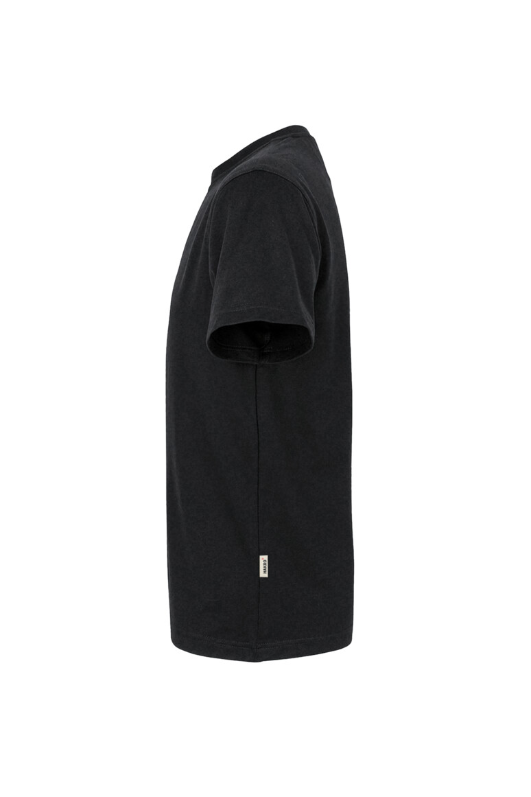 Besonders strapazierfähiges T-Shirt mit rundem Halsausschnitt, geripptem Halsbündchen und Nackenband. Leasingkoller zur einfachen Kennzeichnung in der gewerblichen Wäscherei und Aufhängebänder im Saum. Hergestellt aus weichem, besonders pflegeleichtem und funktionellem, mittelschweren Single-Jersey aus dem HAKRO Performance-Materialmix MIKRALINAR®. Gewebtes HAKRO Necklabel aus hochwertigem Kettsatin mit weichen, ultraschallgeschnittenen Bandkanten für höchsten Tragekomfort und gewebtes HAKRO Flaglabel an der linken Seitennaht.