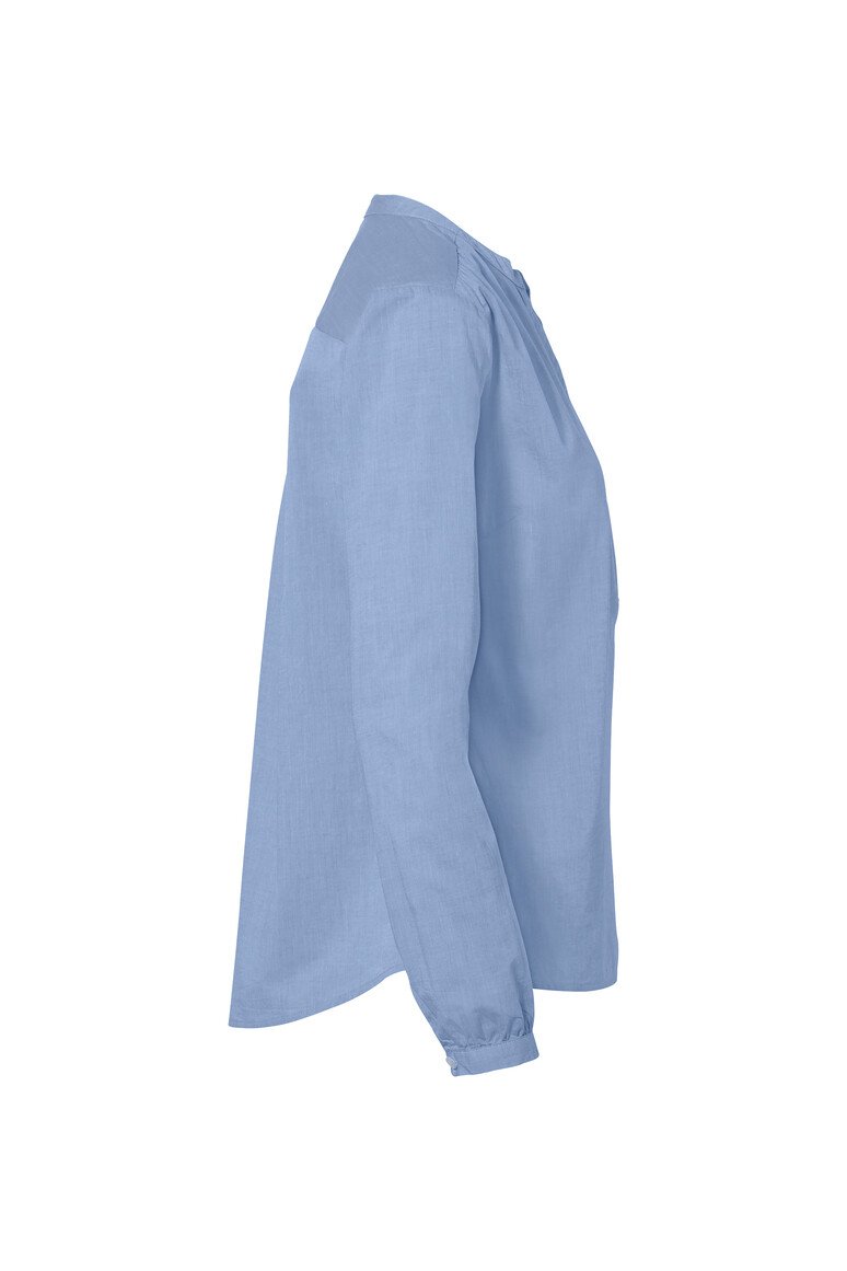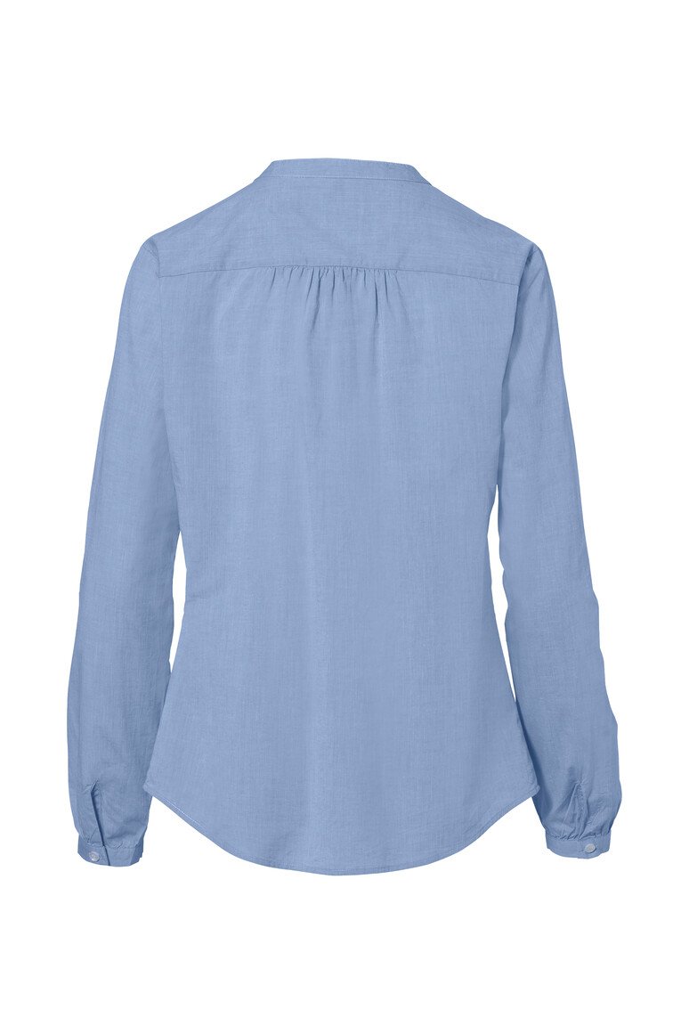 Feminin geschnittene, langärmelige Stretch-Tunikabluse in lockerer A-Linie, mit Mao-Kragen, Abnähern im Brustbereich, leicht gerundetem Saum mit verlängertem Rückenteil und schmalen 1-Knopf-Manschetten mit Ärmelschlitz. Hochwertig und schmal verarbeitete Knopfleiste, feine Raffungen an Schulternaht, Rückenpasse und Ärmelbündchen, doppelte Schulterpasse, 3-Loch-Knöpfe - über Kreuz vernäht und doppelt verknotet für extra festen Halt -, und ein Ersatzknopf. Hergestellt aus feinem und elastischem Baumwoll-Popeline mit LYCRA® mit angenehm weichem Griff. Gewebtes HAKRO Necklabel aus hochwertigem Kettsatin mit weichen, ultraschallgeschnittenen Bandkanten für höchsten Tragekomfort.