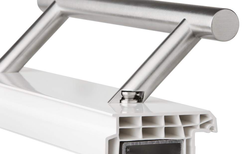 Stoßgriff Serie 8010 Ø 30 mm Länge 300 mm, Achsmaß 210 mm 2 schräge Stützen, inkl. einseitiger Befestigung Oberfl. 60 (Edelstahl matt)