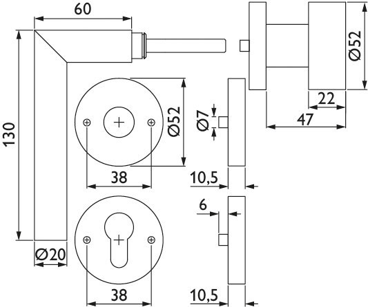 | Durchmesser Türgriff (außen): | 55.00 mm |