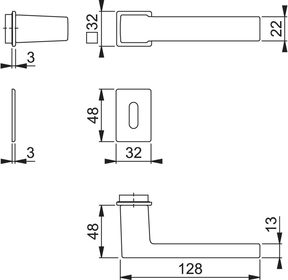 Höhe Schlüsselrosette (außen): 3.00 mm