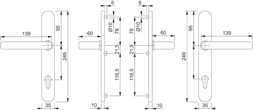 Garnitur / F69 Edelstahl matt / 8 mm / Profilzylinder 92 mm / 67-72 mm / HOPPE-Logo