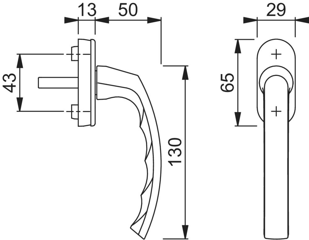 HOPPE Fenstergriff 0540/U26,Stand.,ov.,7/37,verkehrsw.