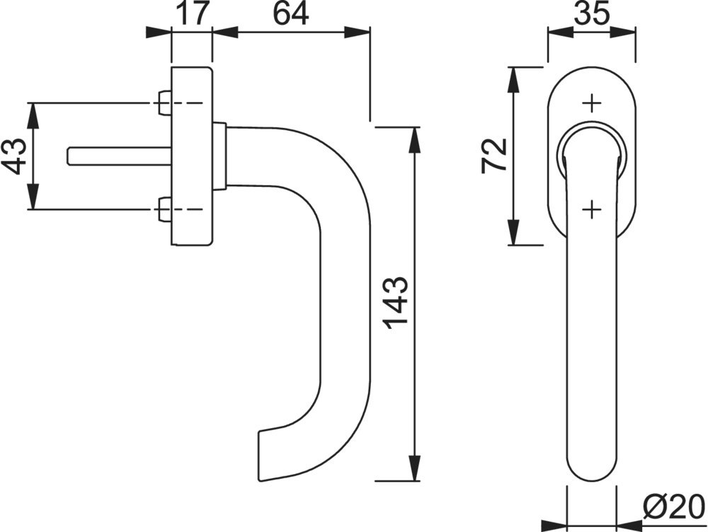 fenstergriff, hoppe ag, fenstergriff/handhebel, hoppe, 12025343, 4012789202786, hoppe fenstergriff 038/ud9056,stand.,ov.,7/20-30,f1, 546967
