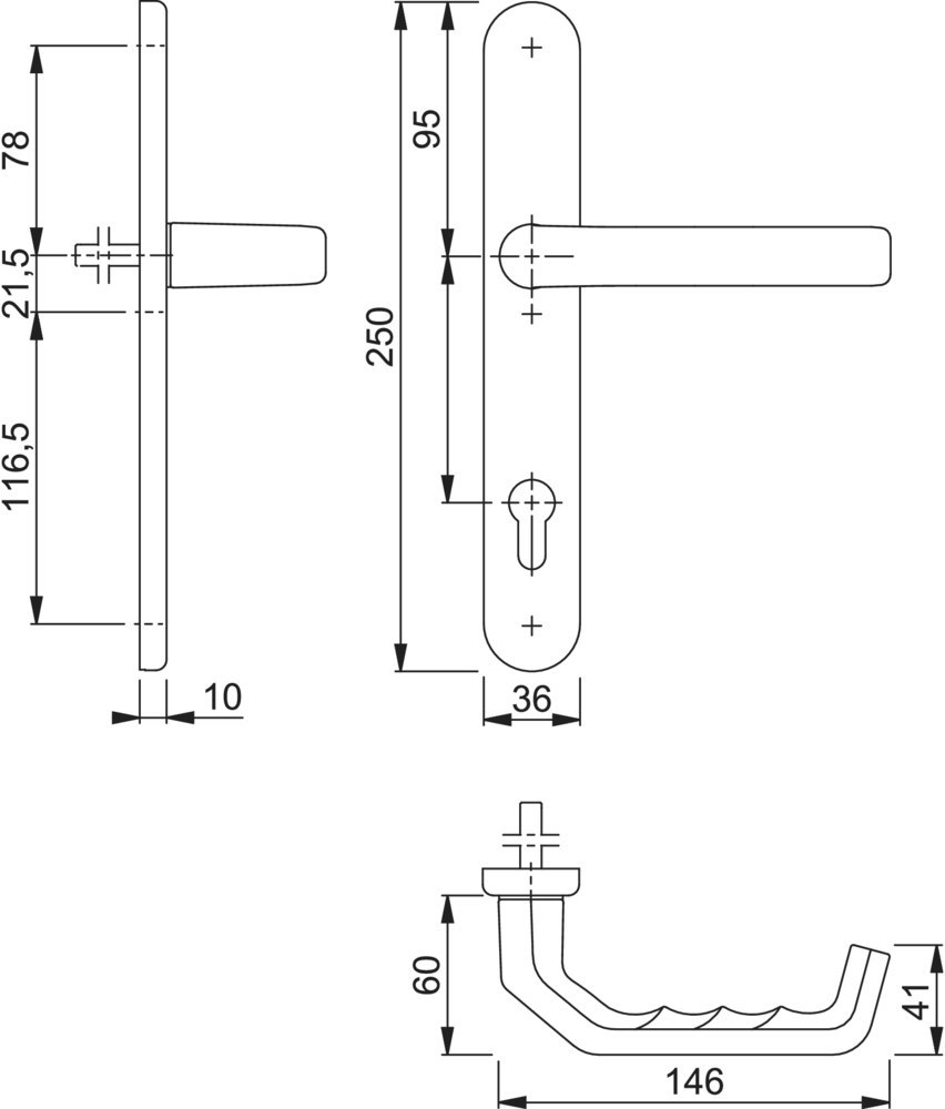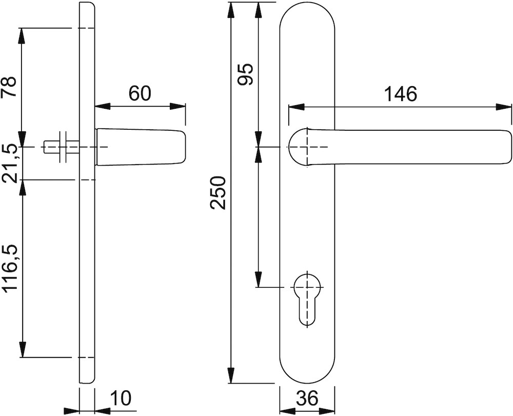 • HOPPE-Halb-Aluminium-Profiltür-Langschild-Innen-Garnitur