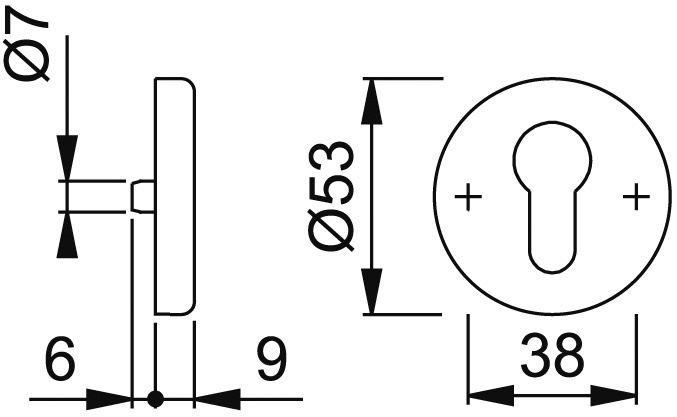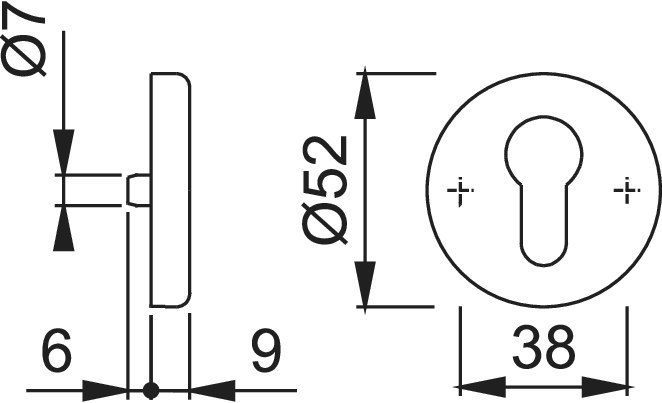 Eigenschaften "HOPPE Schlüsselrosettenpaar 42KVS,rund,PZ, 9mm,TS 37-42,F1"