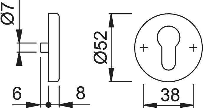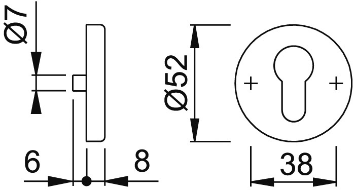 Eigenschaften "HOPPE Schlüsselrosettenpaar E42KVS,rund,PZ, 8mm,TS 37-42,F69"
