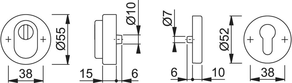 Eigenschaften "HOPPE Schutzrosette E42ZNSB-ZA/42HS,rund,15mm,ZA/PZ,F69,TS57-62"
