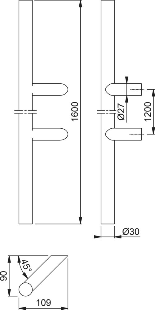 Eigenschaften "HOPPE Stoßgriff E5012,BA 1.200,L 1.600,Ø 30,F69"