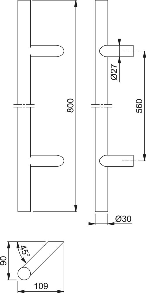 Eigenschaften "HOPPE Stoßgriff E5012,BA 560,L 800,Ø 30,F69"