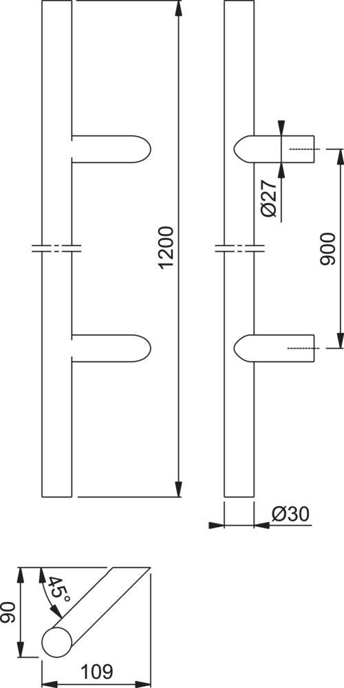 Eigenschaften "HOPPE Stoßgriff E5012,BA 900,L 1.200,Ø 30,F69"