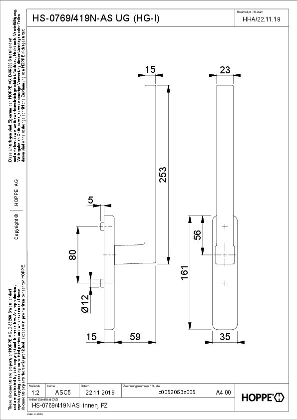 Eigenschaften "HS-Handhebelgarnitur, Austin HS-0769/419N-AS, innen, UG,ALU,schwarz matt"
