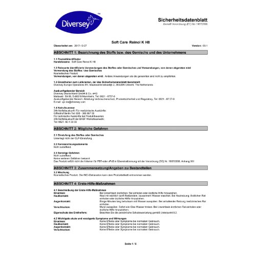 Hersteller: Diversey Europe Operations BV, Mallaustr.50-56, 68219 Mannheim, DE, +4962187570, telesales.diversey@diversey.com