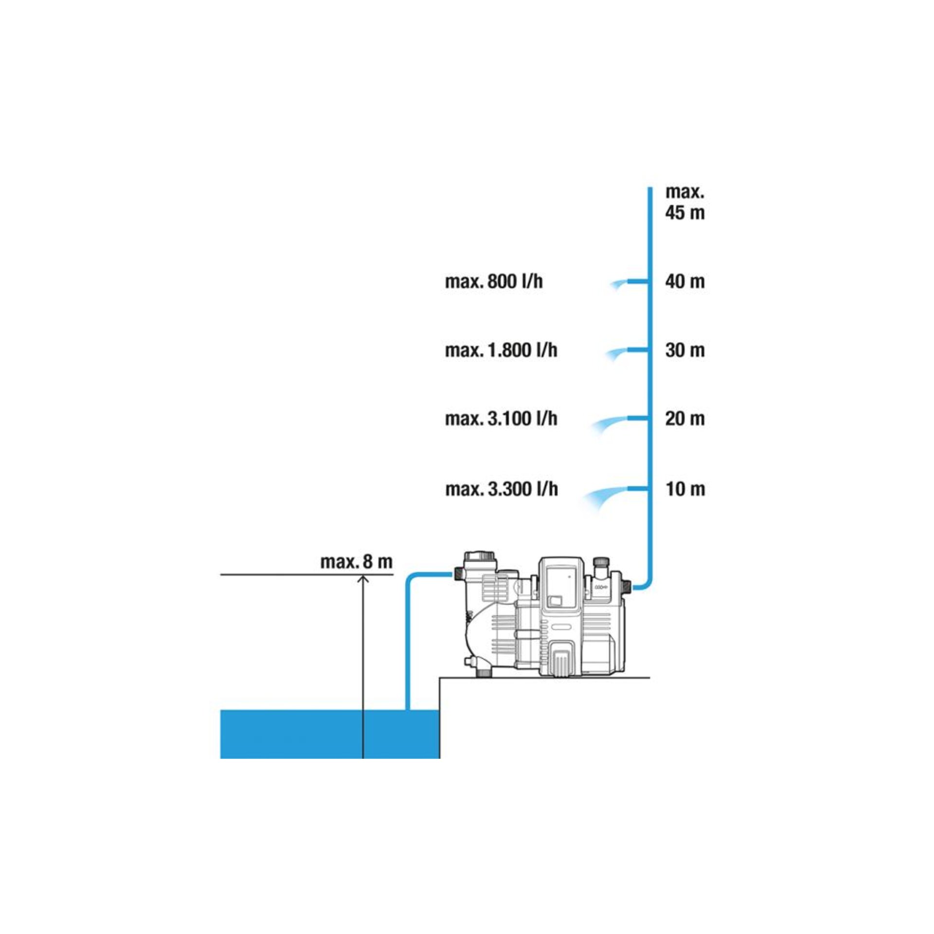 • Integrierte Elektronik aktiviert vollautomatisch bei Wasserbedarf und schaltet danach wieder aus