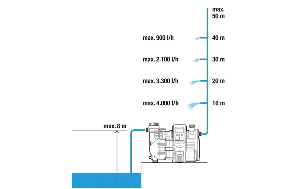 • Integrierte Elektronik aktiviert vollautomatisch bei Wasserbedarf und schaltet danach wieder aus