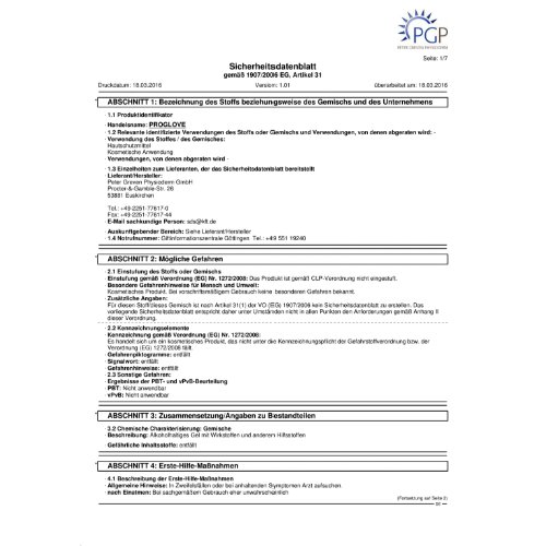 Hersteller: Peter Greven Physioderm GmbH, Procter & Gamble Str.26, 53881 Euskirchen, DE, +492251776170, hautschutz@pgphysio.de