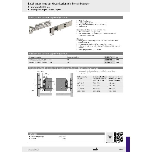 Eigenschaften "Hettich Auszugsführung Quadro Duplex 40, Silent System kompatibel, Maß X = 13 mm, links und rechts"