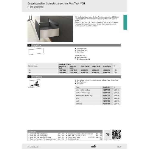 Eigenschaften "Hettich AvanTech YOU DesignCape, Systemhöhe 187 mm x 1970 mm, Kupfer"