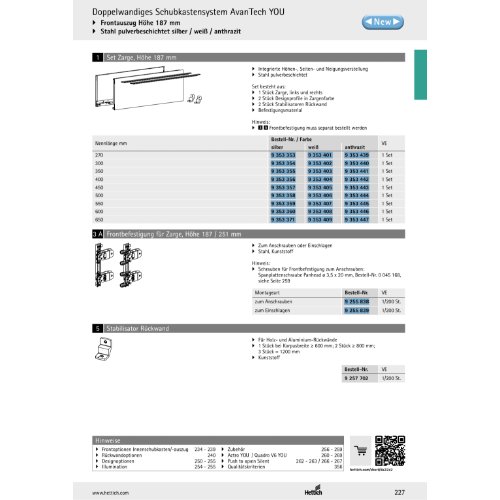 | Variante: | HETTICH AvanTech YOU Frontbefestigung für Zarge, Höhe 187 / 251 mm, zum Anschrauben, Hettich AvanTech YOU Frontbefestigung für Zarge, Höhe 187 / 251 mm, zum Anschrauben |