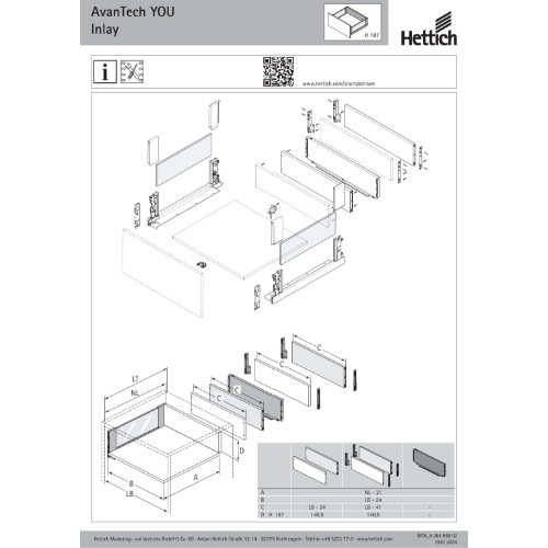 | Variante: | HETTICH AvanTech YOU Set Inlayzarge, Höhe 187 mm x NL 550 mm, silber, links und rechts |