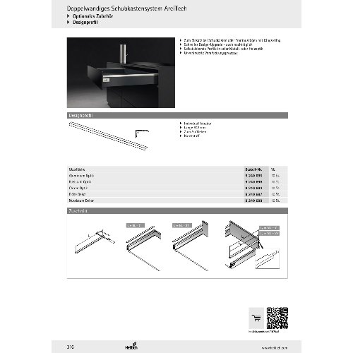 Eigenschaften "Hettich Designprofil ArciTech, 650 mm, Aluminium Optik"