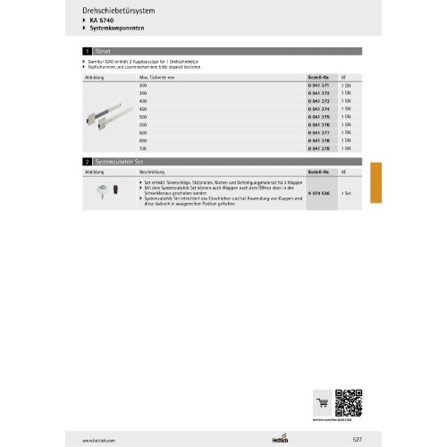 Eigenschaften "Hettich Drehschiebetürsystem KA 5740 / 350 mm"