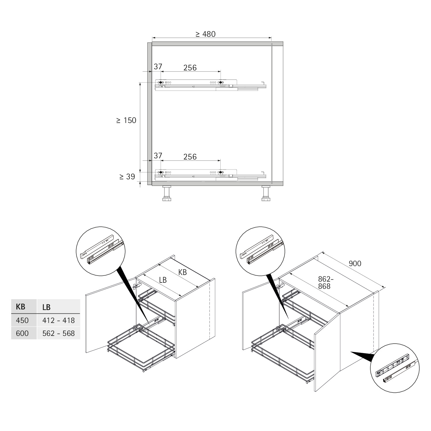 • Innenauszug zur Montage zwischen den Korpusseiten