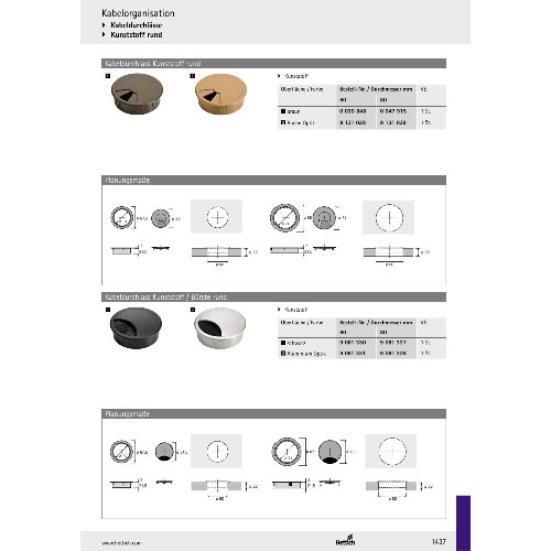 | Variante: | HETTICH Kabeldurchlass, ø 60 mm , Buche Optik, Hettich Kabeldurchlass, ø 60 mm , Buche Optik |