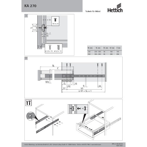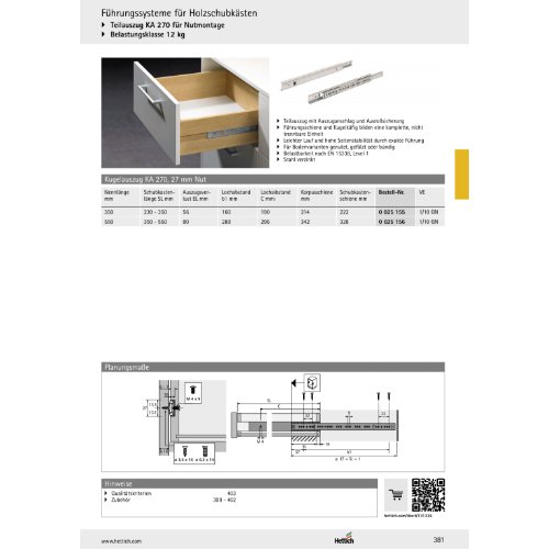| Variante: | HETTICH Kugelauszug KA 270, Nutmontage, Abmessungen (H x B) 27 x 10 mm, 350 - 550 mm |