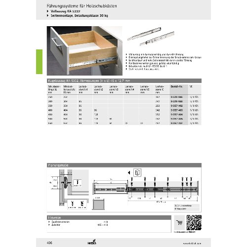 Eigenschaften "Hettich Kugelauszug KA 5332, Seitenmontage, Abmessungen (H x B) 45 x 12,7 mm, 400, blau passiviert, verzinkt, passiviert"