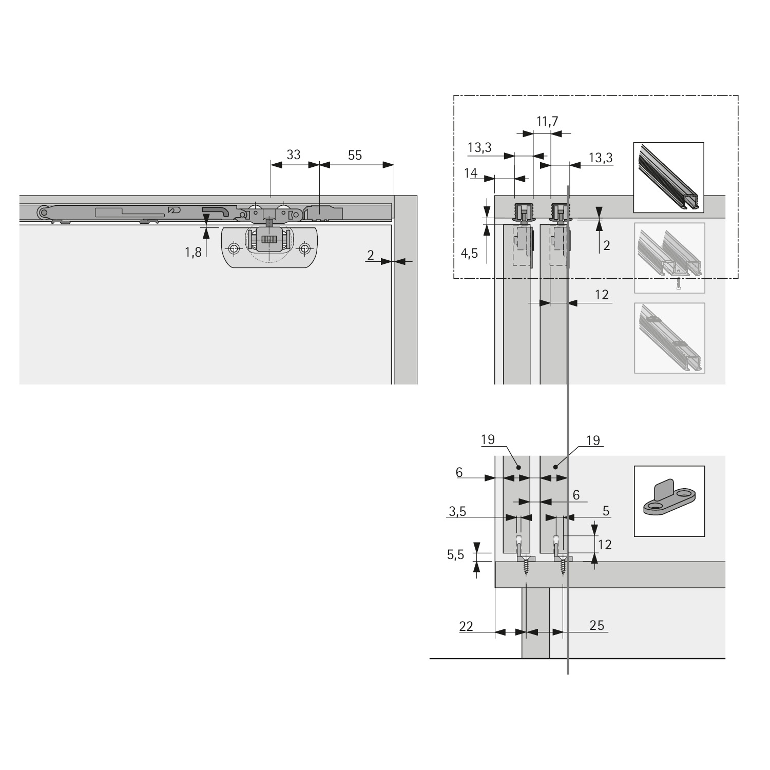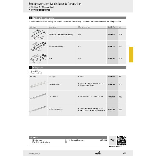 Eigenschaften "Hettich Laufprofil zum Einkleben SysLine S, 2000 mm"