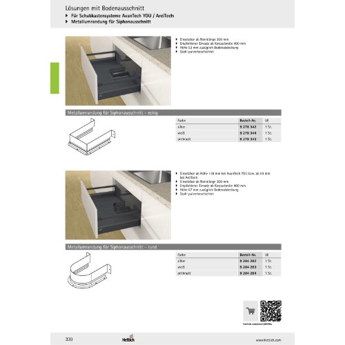 | Variante: | HETTICH Metallumrandung für Siphonausschnitt - rund, silber |